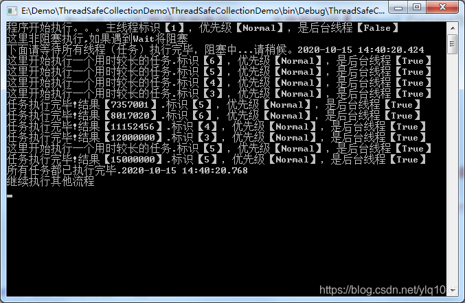 Console.WriteLine($"下面请等待所有线程(任务)执行完毕,阻塞中...请稍候。{DateTime.Now.ToString("yyyy-MM-dd HH:mm:ss.fff")}");